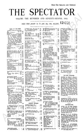 The Spectator, Volume The Hundred and Seventy-Third, 1944.