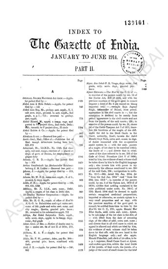 | Subject | : | Index to The Gazette of India - Advertisements and Notices by Private Individuals and Corporations |