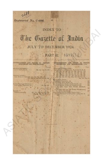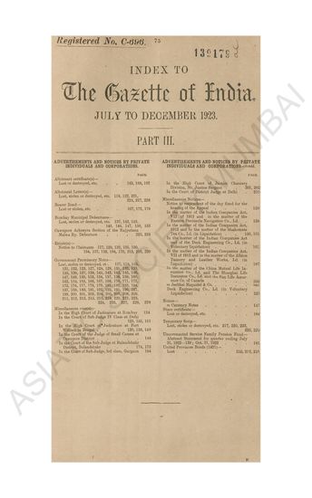 | Subject | : | Government Gazette; Index to Advertisements and Notices by Private Individuals and Corporations; Funds; Promissory Notes |