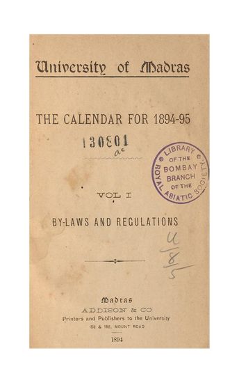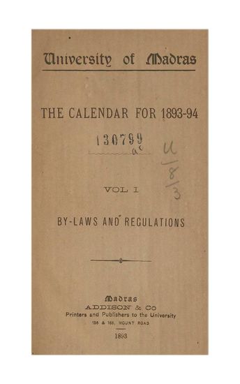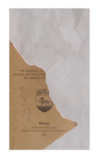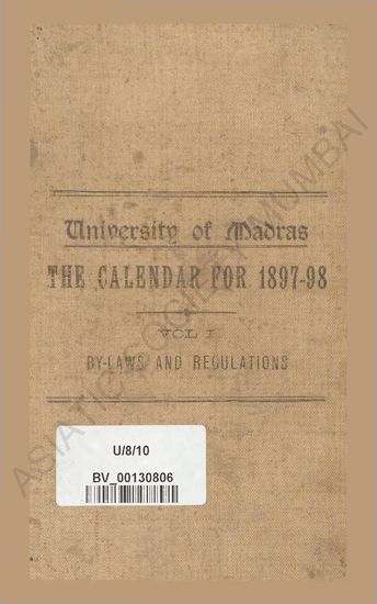 | Subject | : | The University, Act of Incorporation, Act No. VIII of 1904, By-laws and Regulations, Tabular Statements and Subjects for Examinations |