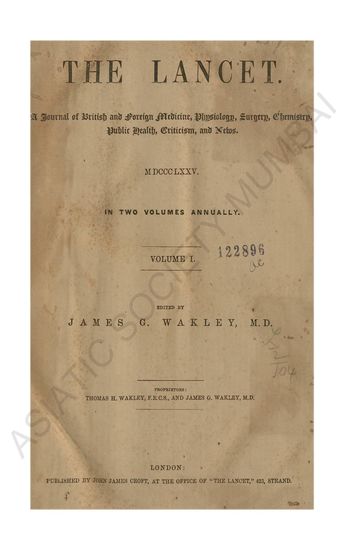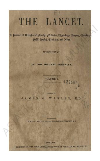 | Publisher | : | John James Croft, at the office of 'The Lancet', 423, Strand |