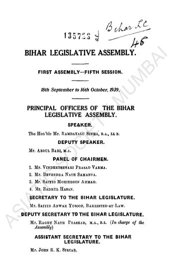 Bihar Legislative Assembly First Assembly-Fifth Session ...