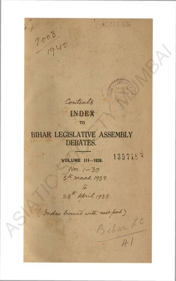 Index to Bihar Legislative Assembly Debates, Vol III-19 ...