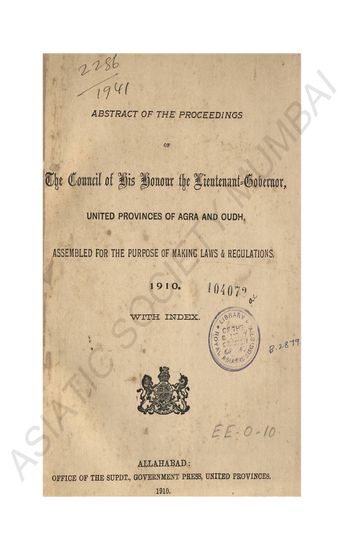 Abstract of the Proceedings of the Council of the Lieutenant-Governor of Burma for the Purpose of Making Laws and Regulations Under the Provisions of the Government of Inda Act…