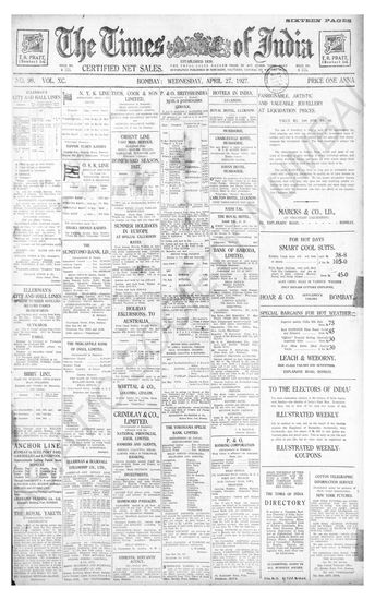 Times of India, April 27, 1927.