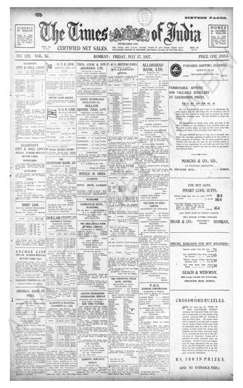 Times of India, May 27, 1927.