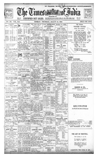 Times of India, August 23, 1928.