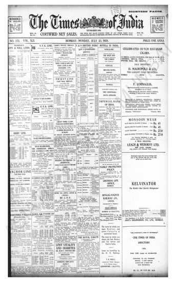 Times of India, July 23, 1928.