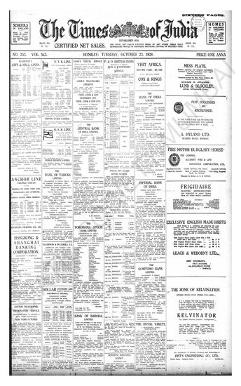 Times of India, October 23, 1928.