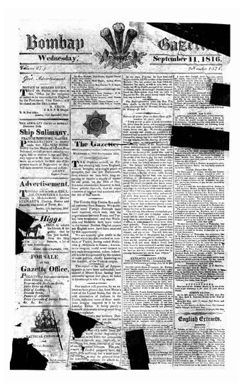 The Bombay Gazette (Weekly Edition), 11 September 1816