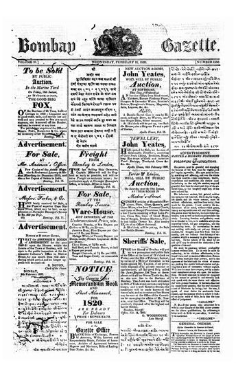 The Bombay Gazette (Weekly Edition), 16 February 1820