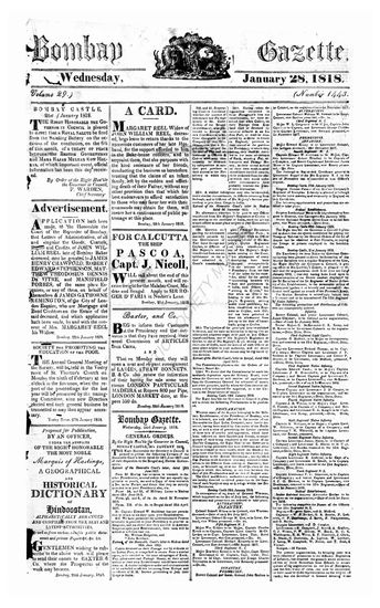 The Bombay Gazette (Weekly Edition), 28 January 1818
