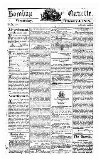 The Bombay Gazette (Weekly Edition), 4 February 1818