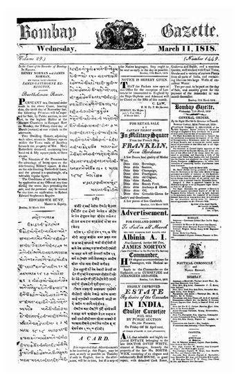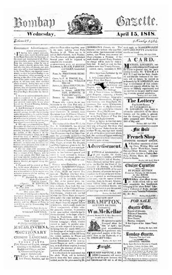 The Bombay Gazette (Weekly Edition), 1 April 1818