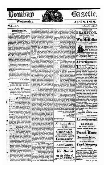 The Bombay Gazette (Weekly Edition), 8 April 1818