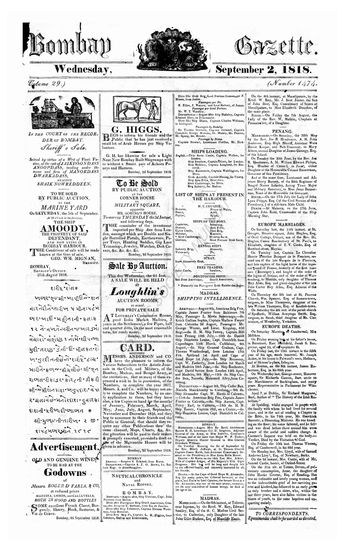 The Bombay Gazette (Weekly Edition), 2 September 1818