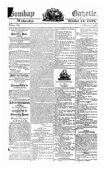 The Bombay Gazette (Weekly Edition), 14 October 1818