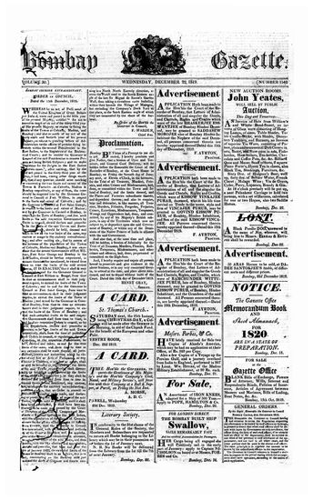 The Bombay Gazette (Weekly Edition), 22 December 1819