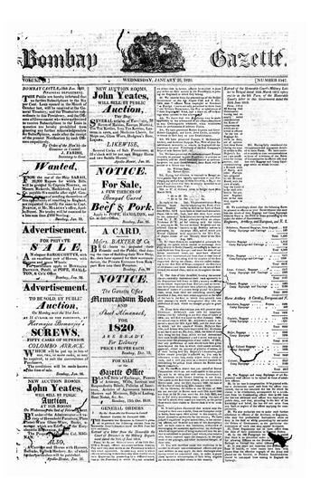The Bombay Gazette (Weekly Edition), 19 January 1820