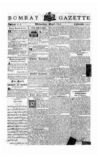 The Bombay Gazette (Weekly Edition), 1 May 1816