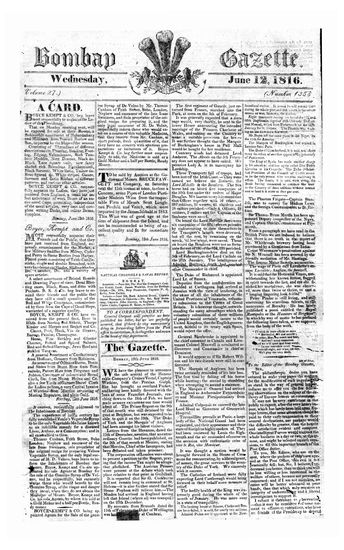 The Bombay Gazette (Weekly Edition), 12 June 1816