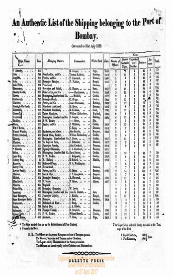The Bombay Gazette (Weekly Edition), 31 July 1819