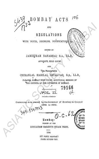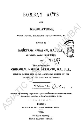 | Author | : | Nanabhai, Jamietram (Ed.) Setalvad, Chimanlal Harilal (Ed.) |