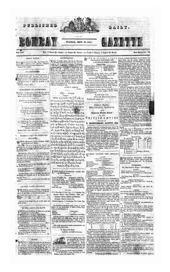 The Bombay Gazette, 28 September 1841