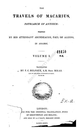 The Travels of Macarius: Patriarch of Antioch: Vol-1 & ...