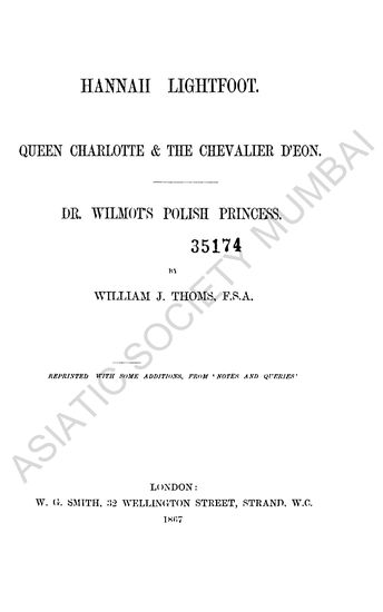 Hannah Lightfoot, Queen Charlotte & the Chevalier d'Eon; Dr. Wilmots Polish Princess