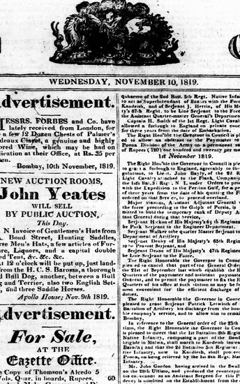 The Bombay Gazette, 3 March 1819