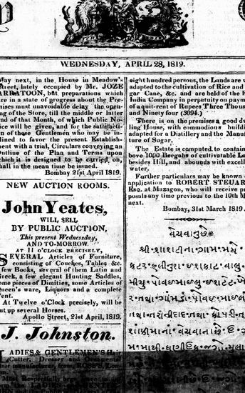 The Bombay Gazette, 28 April 1819