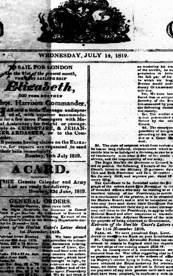 The Bombay Gazette (Weekly Edition), 14 July 1819