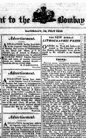 The Bombay Gazette (Weekly Edition), 10 July 1830