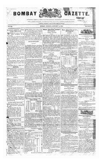 The Bombay Gazette, 4 January 1841