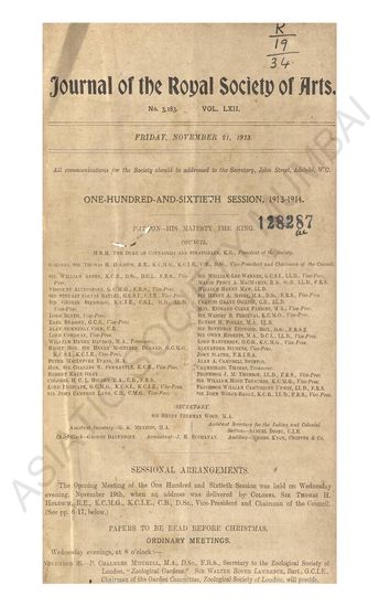 Journal of the Royal Society of Arts. Vol. LXII. Novemb ...