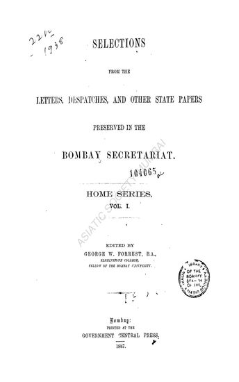 Selections From the Minutes and Others Official Writings of the Honourable Mountstuart Elphinstone