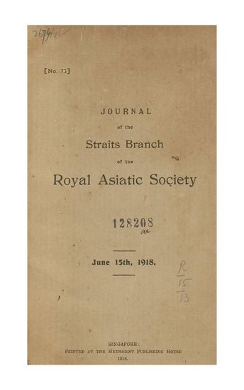 Journal of the Straits Branch of the Royal Asiatic Soci ...