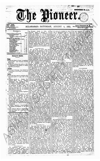 The Pioneer, 6 August 1921