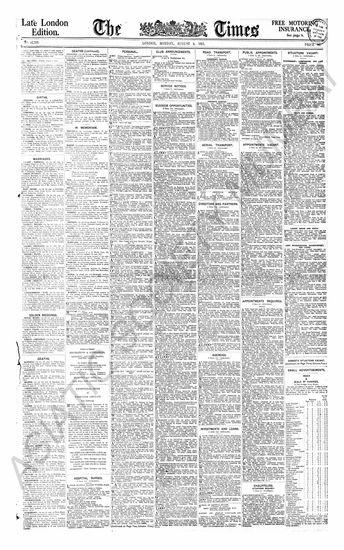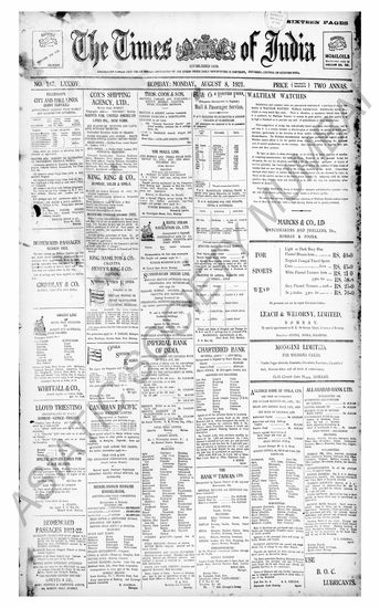 The Times Of India, 8 August 1921