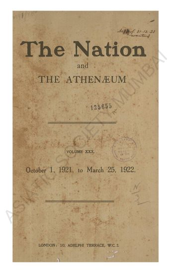 Nation and the Anaeum, Volume XXX, October 1, 1921, to ...