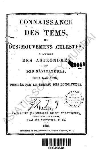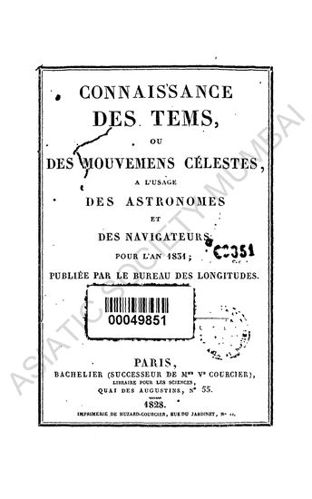 Connaissance des Tems; ou des Mouvemens Celestes a l'Usage des Astronomes et des Navigateurs, pour l'an 1828