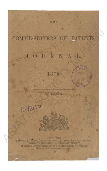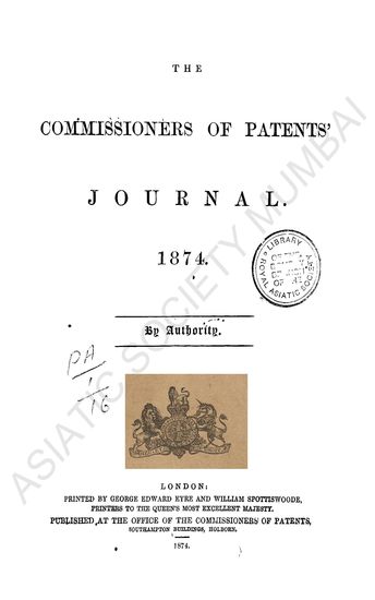 The Office of the Commissioners of Patents 25, Southampion Buildings, Holborn
