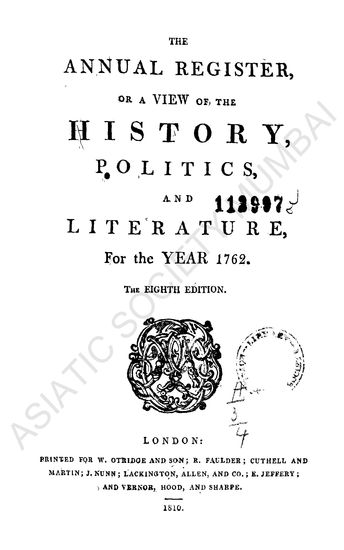 Annual register : or a view of the history, politics, and literature, for the year 1762.