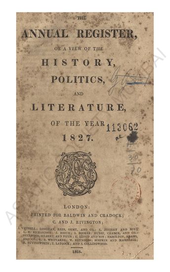 Annual register : or a view of the history, politics, and literature, for the year 1827.