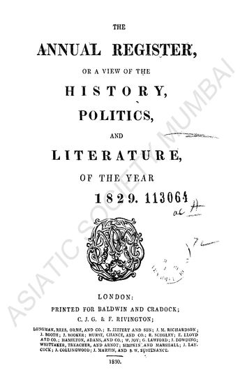 Annual register : or a view of the history, politics, and literature, for the year 1829.