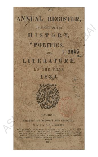 Annual register : or a view of the history, politics, and literature, for the year 1830.