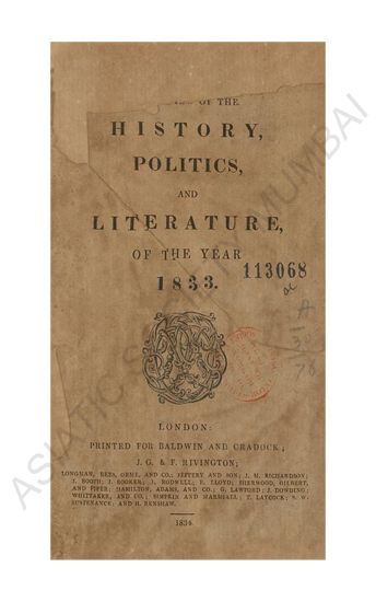 Annual register : or a view of the history, politics, and literature, for the year 1833.