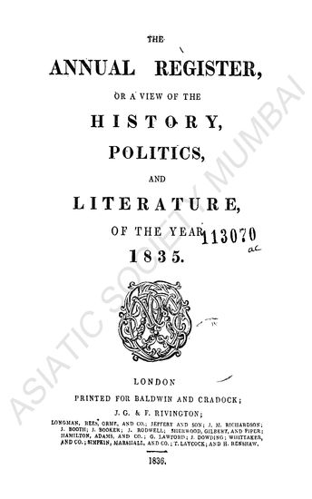 Annual register : or a view of the history, politics, and literature, for the year 1835.