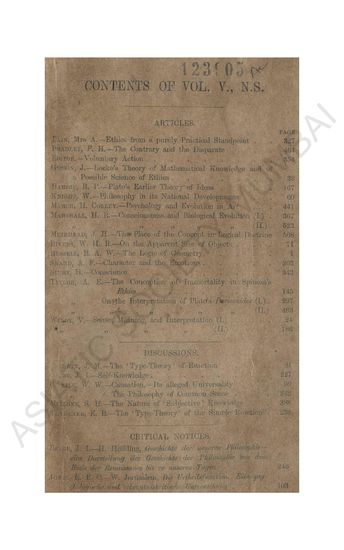 Mind A Quarterly Review of Psychology and Philosophy. New Series Vol VI. 1897.